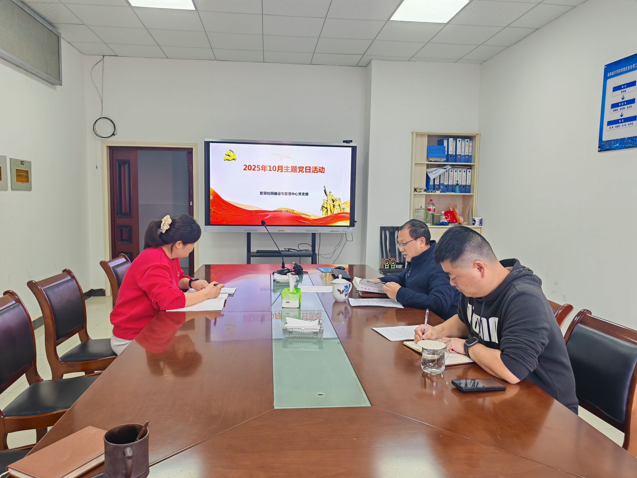 本网讯(通讯员 刘琰)2025年10月23日,智慧校园建设与管理中心党支部围绕“党建与业务深度融合”主题,组织开展了10月主题党日活动。活动聚焦组织建设、思想引领、纪律锤炼与业务推进,通过理论学习与民主议事相结合的方式,进一步强化支部战斗堡垒作用,推动智慧校园建设提质增效。