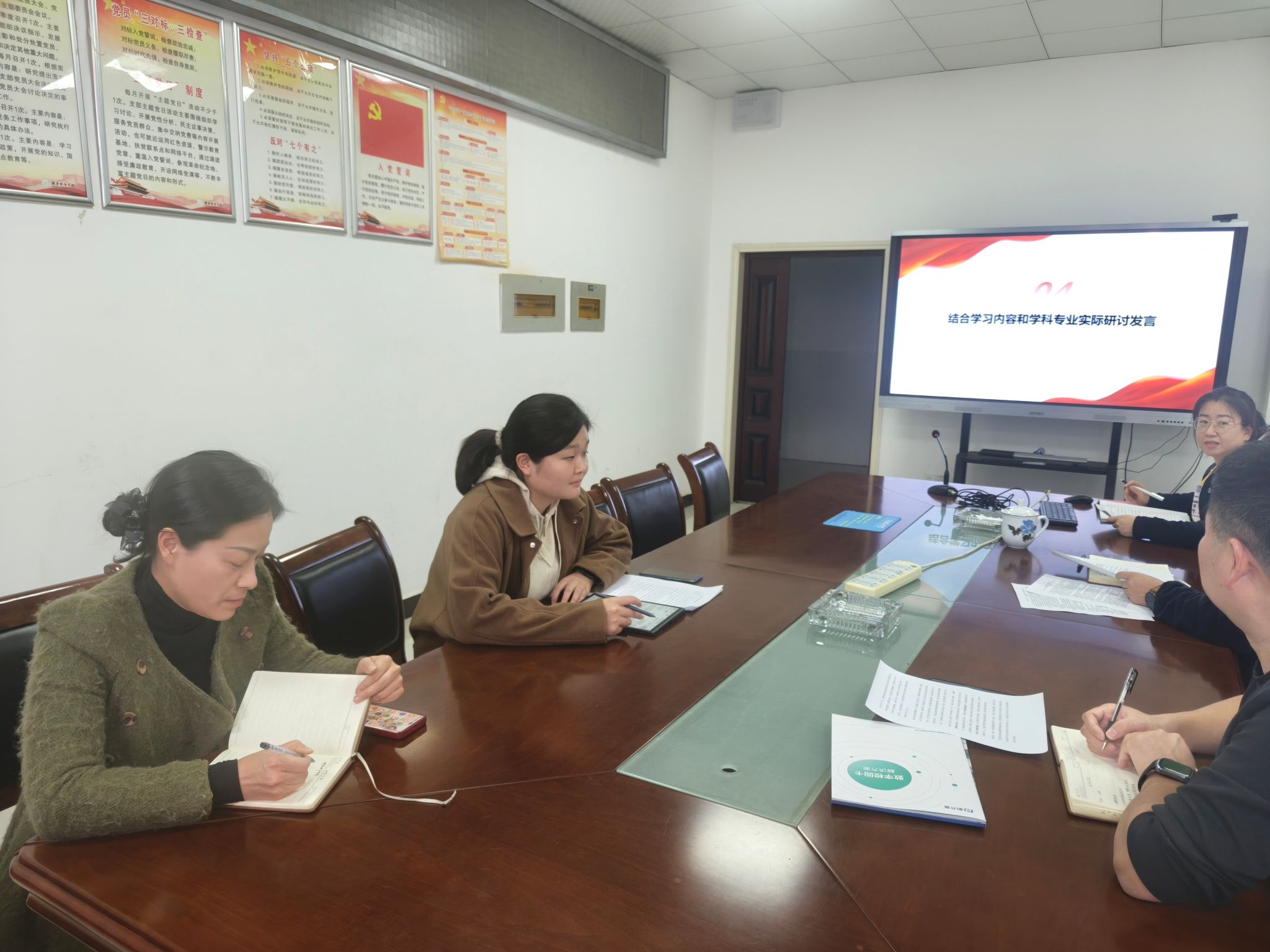 在专题学习《习近平谈治国理政》第五卷中《一步一个脚印把建成科技强国战略目标变为现实》重要讲话时,与会教师结合自身岗位实际,畅谈学习体会和落实思路。苏炅老师表示,作为高校信息化建设者,必须把握战略方向,强化使命担当。要将智慧校园建设置于学校发展全局中谋划,聚焦主责主业,打通“数据壁垒”,推动信息技术与教育教学深度融合。她提出要重点建设智慧科研平台、筑牢教学安全防线、提升师生数字素养,并从夯实基础设施、深化融合应用、加强自身能力建设三个方面扎实推进工作,真正做到“人尽其才、才尽其用”。刘琰老师结合部门工作实际,提出要以政治引领为根本、服务大局为关键、安全可控为底线,推动学习成果转化为实践成效。她强调要落实总书记“以深化改革激发创新活力”的要求,持续推进机制创新、评价改革和队伍建设,以“功成不必在我,功成必定有我”的精神,把智慧校园建设蓝图一步步变为现实。杨光辉老师立足智慧教室运维管理一线岗位,动情地谈到:“每一根线缆的铺设、每一个接口的调试,都是在为学校升大申博添砖加瓦。”他表示将秉持“精耕细作保运行、守正创新促融合、用心用情优服务”的工作理念,确保教学“零中断”,持续优化师生使用体验,让技术真正服务于人,助力教学质量提升。刘训芳老师从财务与资产管理角度出发,表示将进一步强化责任意识,确保经费使用规范透明,项目落地高效有序,以精细化管理支撑智慧校园项目建设,为学校高质量发展提供坚实保障。